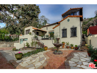Remarks: Stunning Hollywood Spanish Revival. This historic 1926 architectural gem has been lovingly restored with exquisite attention to detail. The 4 bedroom 3 bath plus study 2530 sq ft home features dramatic touches including vaulted hand carved wood beam ceilings, a brilliant Oggi style front door, Spanish colonial wood burning fireplace, over-sized picture window that bathes the living room in light while looking out to the cozy courtyard's restored mural and detailed brickwork. Updates include a gourmet kitchen highlighted by custom cabinetry, Arabesque Arto concrete tile work, Viking Professional Series appliances with a six burner range, copper three basin sink, quartzite counter tops, and Waterstone hardware with pot filler. The stylishly remodeled master bath features a two person rain shower designed with arabesque custom ceramic tiles. This property is equipped with new A/C units, lush irrigated landscape, and new roof tiles. See this very special private gated compound. | |||||