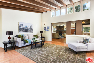 Remarks: Mid-Century Post and Beam in the Hollywood Hills with panoramic canyon views. Vaulted wood plank beam ceilings and Clerestory Windows frame the sun-drenched living room with sliding glass doors that lead to a spacious Entertainer's deck. Adjacent family room features pitched beam ceiling and a wall-to-wall mantled wood-burning fireplace with raised hearth and fireside seating. The cozy dining area opens to a white tiled kitchen accented by a Garden window. Stylish Master bedroom shares a bath with the adjoining sitting room/office. Separate en suite bedroom opens to the deck. Laundry/storage room and two-car garage. Close to studios, shopping, hiking trails and Lake Hollywood. Easy access to downtown LA, Hollywood nightclubs and restaurants. | |||||